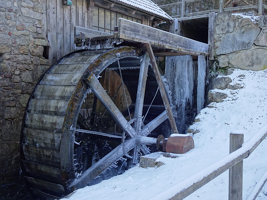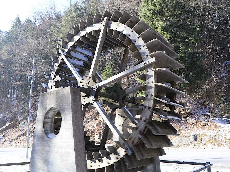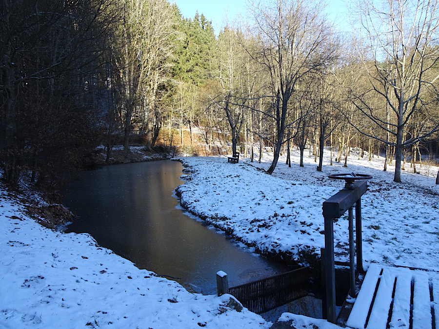 Wir nähern uns der zweiten Station, deren Reste vom 2.Hammer wurden um 1990 von Mitgliedern des Vereins „Thurytal“ fachmännisch restauriert und eine Schauschmiede und ein Wasserrad errichtet.