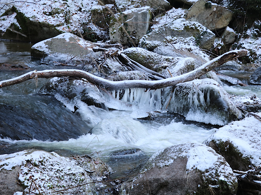 Ständig begleitet von den Eiskunstwerken im Fluss und dem Rauschen der Aist hätten wir fast den Teufel übersehen. Unser Blick galt den „kalten“ Schönheiten der Natur.