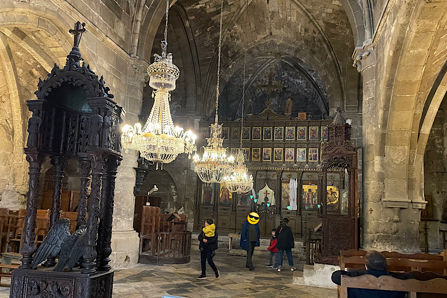 Vom 12. bis 14. Jahrhundert wurde das Kloster Bellapais erbaut. Achmed hat uns informativ auf die verschiedenen Bauetappen und Besonderheiten hingewiesen. Wer aber waren die Bauarbeiter? Waren es Sklav:innen, Zwangsarbeiter:innen? Wer musste die Bausteine aus dem Steinbruch schlagen? Wer waren die Menschen, die die Klostergebäude bauten. Wie war es beim Bau um Nächstenliebe bestimmt?