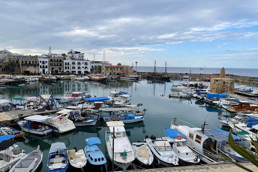 Nach der Besichtigung wechselten wir in ein kleines gemütliches Lokal, wo wir ins einen Mittagssnack gönnten. Dazu gab es frisch gepressten Organgensaft. Die Säfte (Orangen oder Granatapfel) hier überall eine Wohltat, wo man die Frucht beim Trinken direkt vor und in sich spürt. Ein älterer Herr schenkte uns Mandarinen.🍊 Zurück am Bus fuhren wir weiter nach Kyrenia.