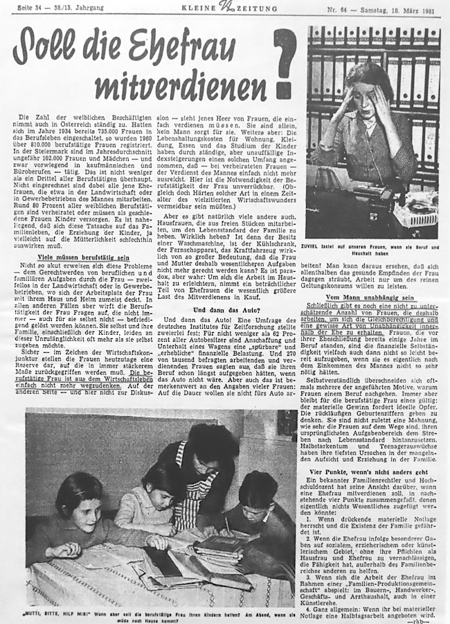 Frauen zwischen Erwerbstätigkeit und Sorgepflichten – ein Thema, das heute aktueller denn je ist. Doch schon in den 1950er- und 1960er-Jahren haben sich Frauen zwischen diesen Welten bewegt, und das großteils nicht sichtbar. Gender Pay Gap und Teilzeitfalle sind moderne Begriffe für Umstände, die auch schon in der Nachkriegszeit in Österreich geherrscht haben.1