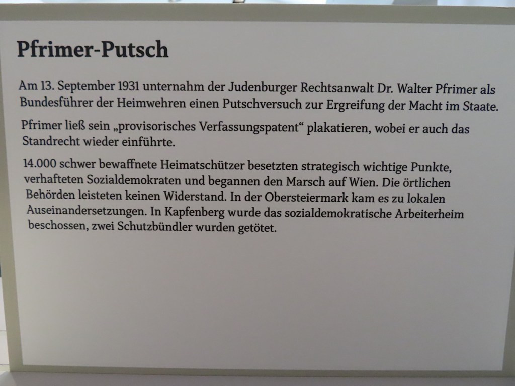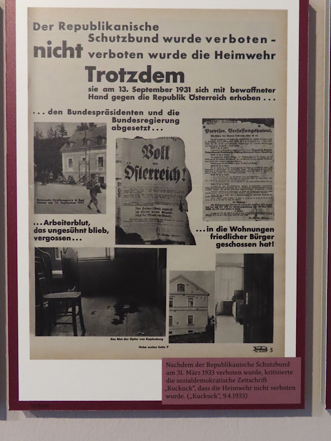 Wichtig ist, dass die Ereignisse der Beseitigung der Republik und Demokratie durch den Austrofaschismus in dieser Ausstellung “gestreift“ werden.