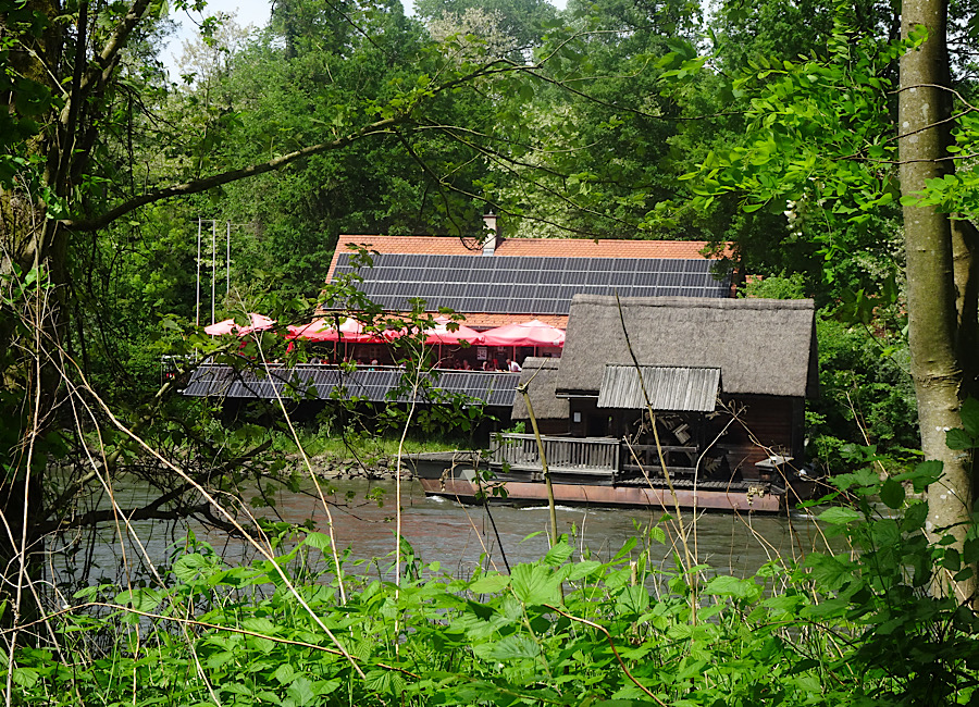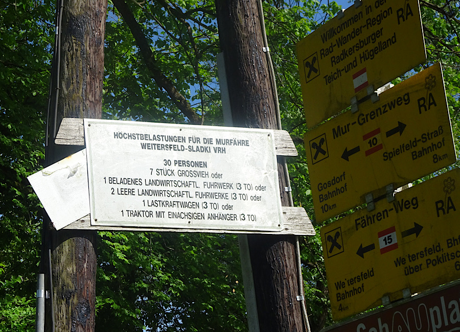 Später erhaschen wir einen Blick auf die erste der drei Schiffsmühlen auf der Mur, die sich hier in Mureck befindet. Sie ist im Winter 2005/06 auf Grund gelaufen und u. a. 2012 beim Hochwasser gesunken. Nach einem Abgang der Originalausführung mit Totalschaden bildet die heutige einen authentischen Nachbau und ist ein attraktiver Anziehungspunkt für Besucher. Um den Erhalt kümmert sich ein Verein.