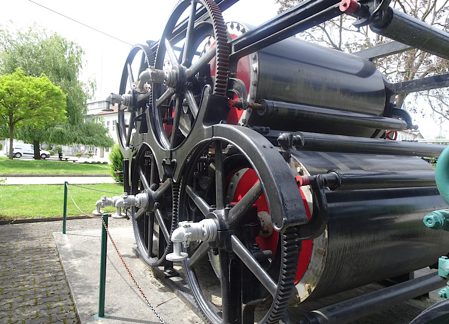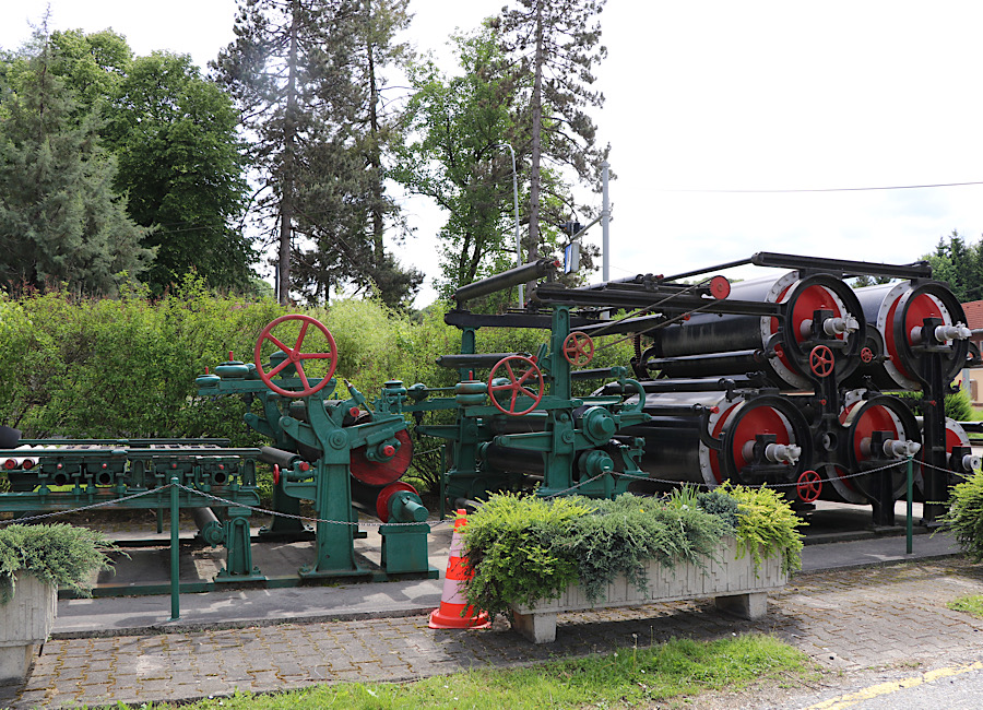 Wir erreichen die Ortschaft Sladki Vrh, die von den Gebäuden des Seidenpapierherstellers der Firma Paloma dominiert wird.Dort zeigt uns 5r & Familiy mit seinem Cache Papirni stroj 1 eine Papiermaschine, die 1922 gebaut wurde und 75 Jahre in Betrieb war und 400.000 Tonnen Papier produzierte. Die Anlage wurde für die Produktion von glattem Packpapier und Verpackungspapier mit einer Breite von 1,75 m konzipiert. Die Geschwindigkeit betrug 120 m/min.