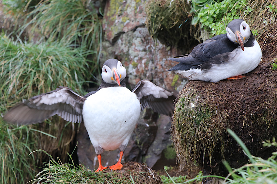 Nach dem Frühstück, das wir hier am CP nachholen zieht es uns auf Anraten von Eva, ein Tourguide unserer Gruppe trotzdes Wetters nach Hafnarholmi zur Papageientaucherkolonie.