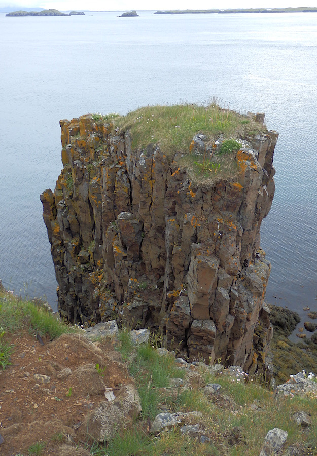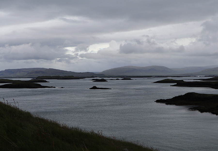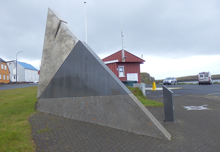 Deutsche Kaufleuten aus Bremen und Oldenburg errichteten in Stykkishólmur 1550 einen Handelsstützpunkt. Als erstes sehen wir vom Campingplatz aus die neue Kirche aus Beton, in der im Sommer Konzerte stattfinden, Hinter der Kirche, die 1990 eingeweiht wurde, holten wir uns den Geocache Winnie@Iceland. Von hier hatten wir auch einen ersten tollen Ausblick über die Stadt.