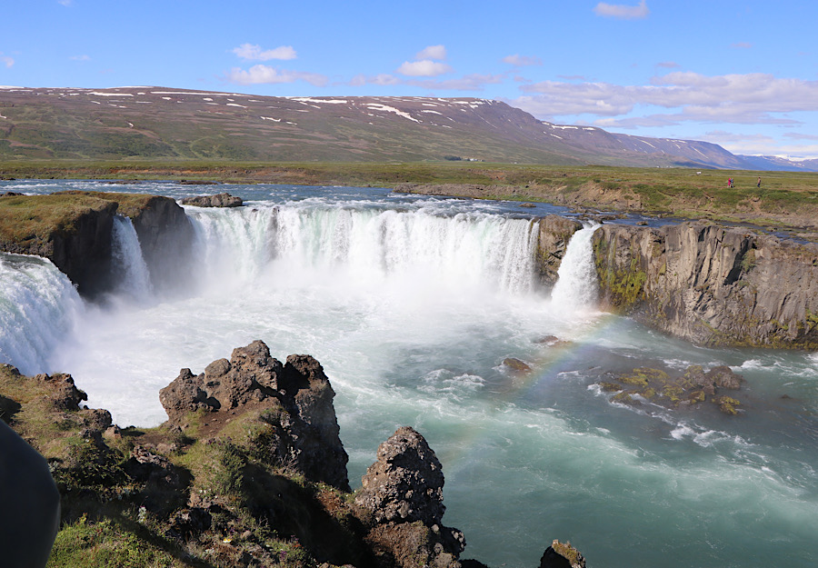 zwischen Hörðaland und Rogaland einen Steinhaufen, der Flóki-Steinhaufen genannt wurde. Flóki segelte zunächst zu den Shetlandinseln und dann in Richtung Snæland, wie Naddoddur die Insel im Norden nannte. Als er den ersten Raben freiließ, kehrte dieser direkt zum Bug zurück. Der zweite flog hoch, kehrte aber zum Schiff zurück. Als er den dritten Raben freiließ, flog dieser vom Bug und deutete auf Land. Sie kamen östlich des Horns und segelten entlang der Küste nach Westen, vorbei an Faxaflói und Snæfellsnes, und landeten in Vatnsfjörður bei Barðaströnd, wo sie beschlossen, die kommenden Wintermonate zu bleiben. Da der Fjord voller Fische war, kam es ihnen nicht in den Sinn, Heu zu ernten.