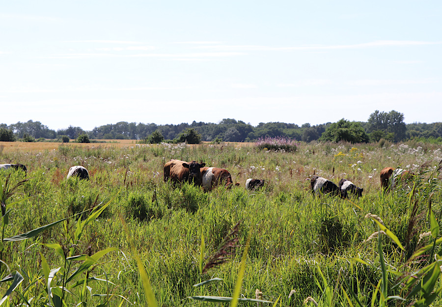 Im westlichen Teil des Projektgebiets wurde Gestrüpp gerodet, Zäune errichtet und die Fläche wird nun ebenfalls von robusten Rindern beweidet. Die Beweidung bewahrt und sichert ein lichtoffenes Sumpfgebiet.