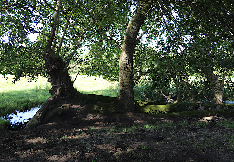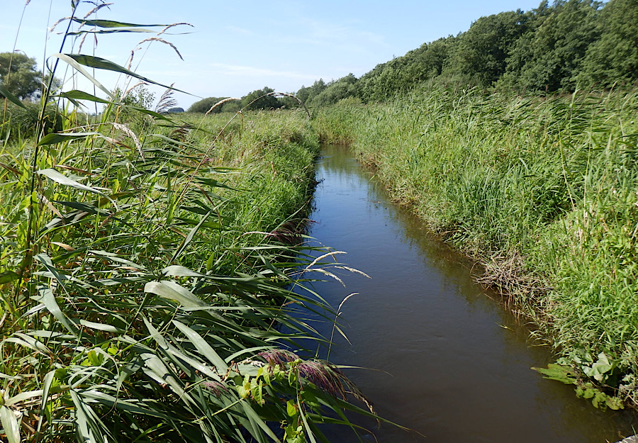 Hier gibt es ein klassisches Beispiel für Renaturierung. Hier bei Maden wurde ein Abschnitt des Viby Å mäandriert, das Bachbett wurde angehoben und die Wiesen werden bei hohem Wasserstand im Bach überschwemmt.