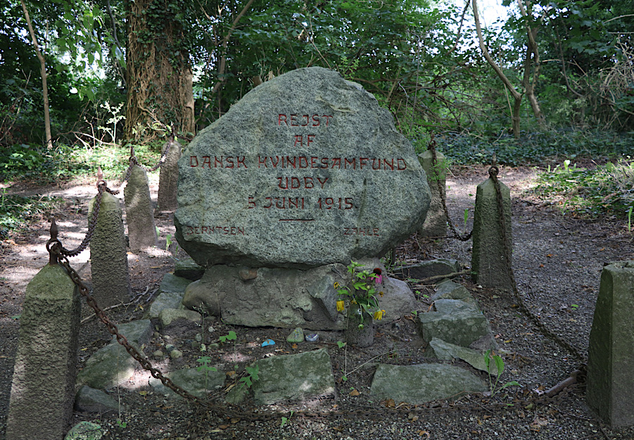 In Viby am Gelände der ehemaligen Kirche haben wir diesen Gedenkstein von Frauenorganisationen aus dem Jahr 1915 entdeckt.