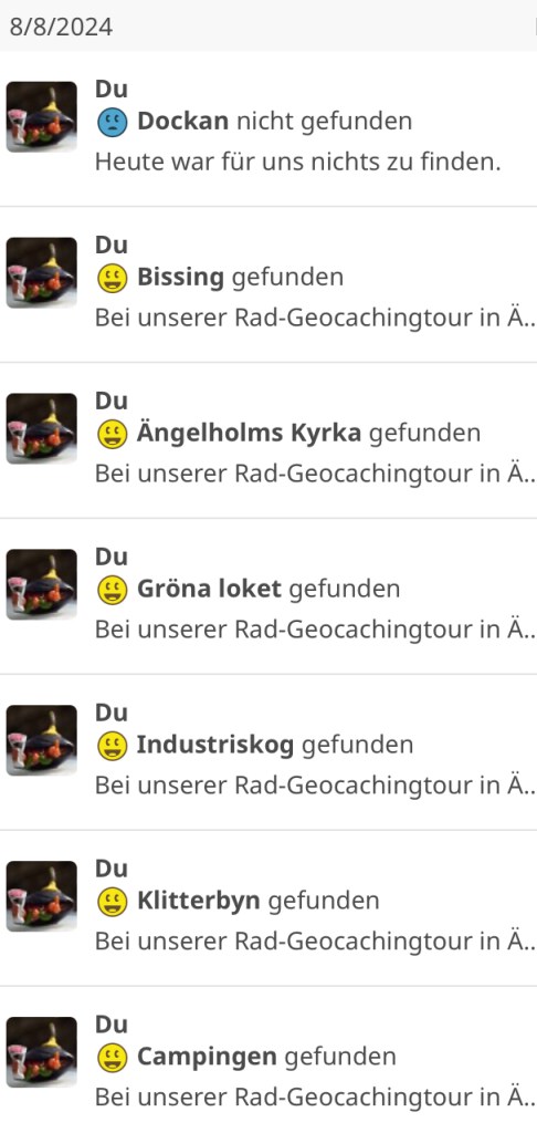 Unsere Rad-Geocaching-Tour starteten wir im angrenzenden Wald des Campingplatzes. Den ersten Cache (Campingen) mussten wir längere Zeit suchen. Feuchtigkeit und wärmere Temperaturen, eine ideale Kombination für Gelsen, ließ uns bald zu Brigittes selbstgemachten Gelsenspray greifen.