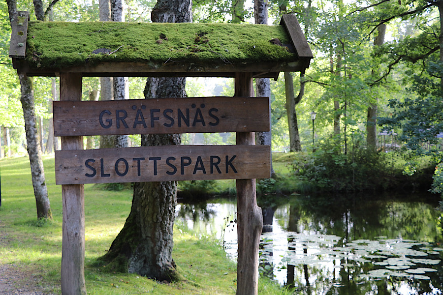 Der Schlosspark Gräfsnäs hat eine lange und spannende Geschichte aus verschiedenen Epochen. Es war ein prächtiger Barockpark und dann ein klassischer englischer Park, wovon unter anderem die Alleen zeugen. Nachdem das einst stattliche Schloss im Abstand von 100 Jahren dreimal abbrannte, verfiel der Park. (Dieser Text und Informationen stammen von Infotafeln im Park).
