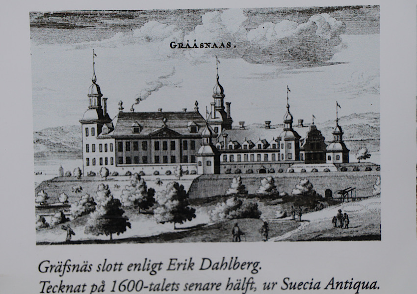 Im Jahr 1814 wurde das Schloss Gräfsnäs umfassend umgebaut. Das Gewölbe zum Burghof wurde entfernt und die hohen Wälle rund um den Burghof abgerissen. Das Schloss gilt zu dieser Zeit als eines der prächtigsten Steingebäude in Västergötland mit 50 Räumen, zwei hohen Türmen und einem hohen Mittelteil in drei Teilen.