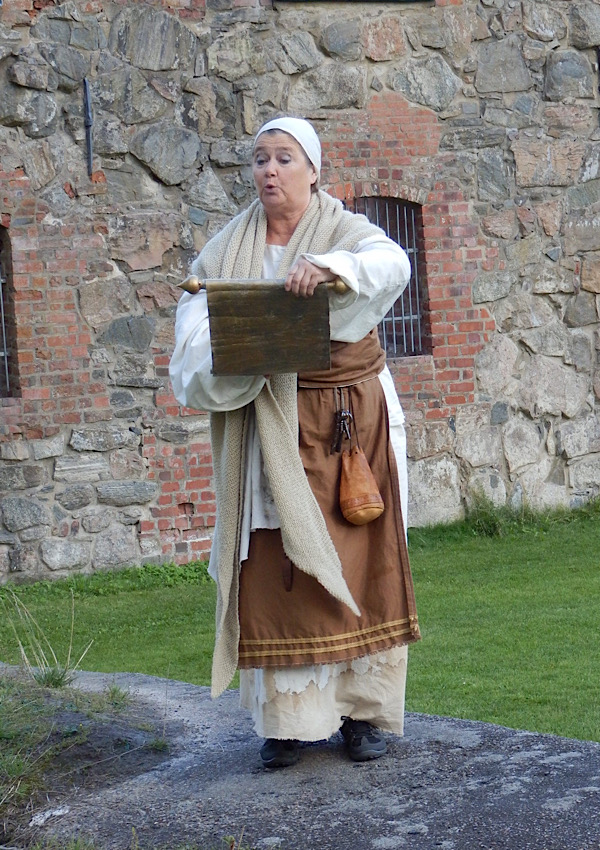Ungefähr zehn Schauspieler unterschiedlichen Alters führten diese Geschichte im Schlosspark Gräfsnäs auf (darunter Susanna Nerell von Kultur i Bjärke und Staffan Nattsén von ENteater).