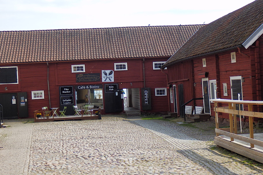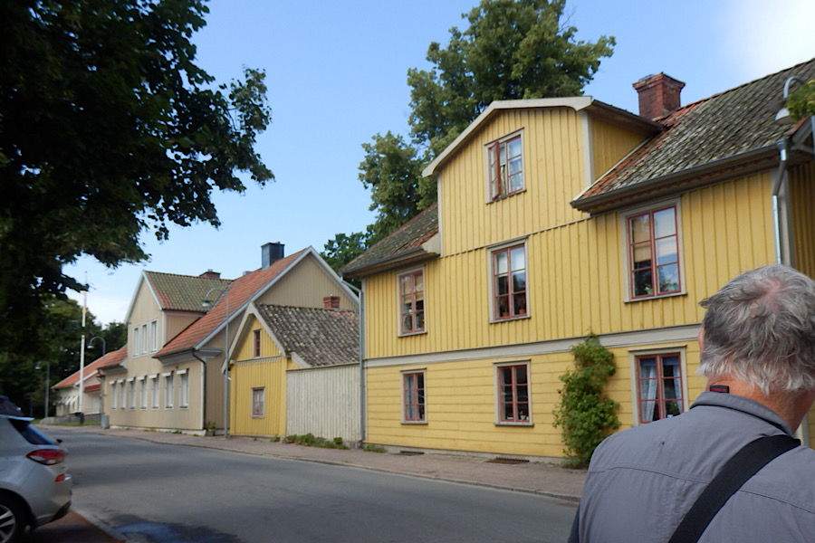 Bei unserem Spaziergang durch die Stadt heben wir auch einige Geocaches. Beim Adventure-Lab scheitern wir bei der dritten Station, weil wir die richtige Farbe der alten Holzhäuser in schwedischer Sprache nicht hinbekommen.