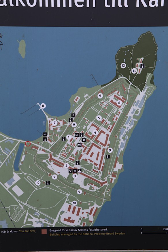 Am nächsten Tag besuchen wir die Festung, die am Beginn des 19. Jhdt. hier erbaut wurde und 16 Jahre nach Fertigstellung 1925 ausser Betrieb genommen wurde. Nach der Außerdienststellung der Festung 1925 verblieb Karlsborg ein wichtiger Garnisonsort. Viele Gebäude im Gelände werden für zivile Angelegenheiten genutzt, aber das Militär ist omnipräsent. Wir sehen öfters Soldat:innen, die hier zur Ausbildung sind.