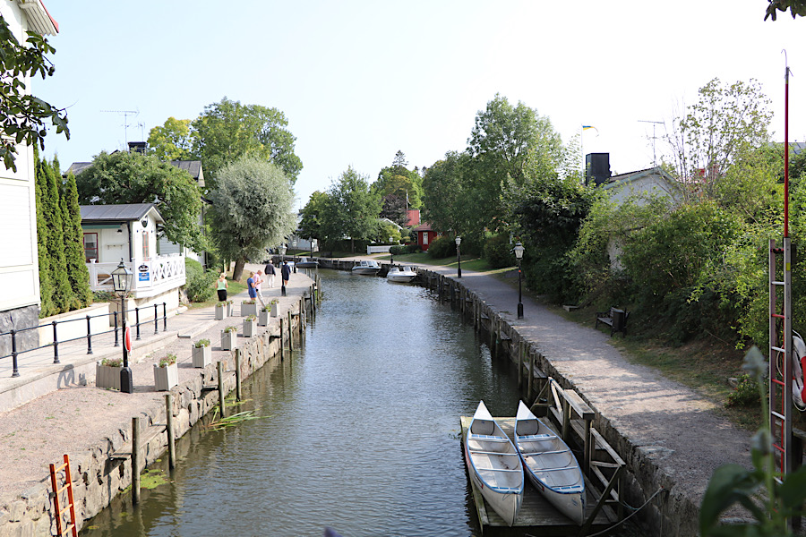 Auf unserer Rückfahrt zurück ist Trosa unsere erste Station. Warum ausgerechnet Trosa „das Ende der Welt“ sein soll ist uns auch nicht ganz klar. Der Slogan steht in den Broschüren des Orts und über den Beinamen wird heftig spekuliert. Im 18. Jahrhundert soll es nur eine einzige Zufahrtsstrasse aus dem Sörmland nach Trosa gegeben haben. Für damaligen Bewohner:innen aus dem Landesinneren war Trosa das Ende der Welt.