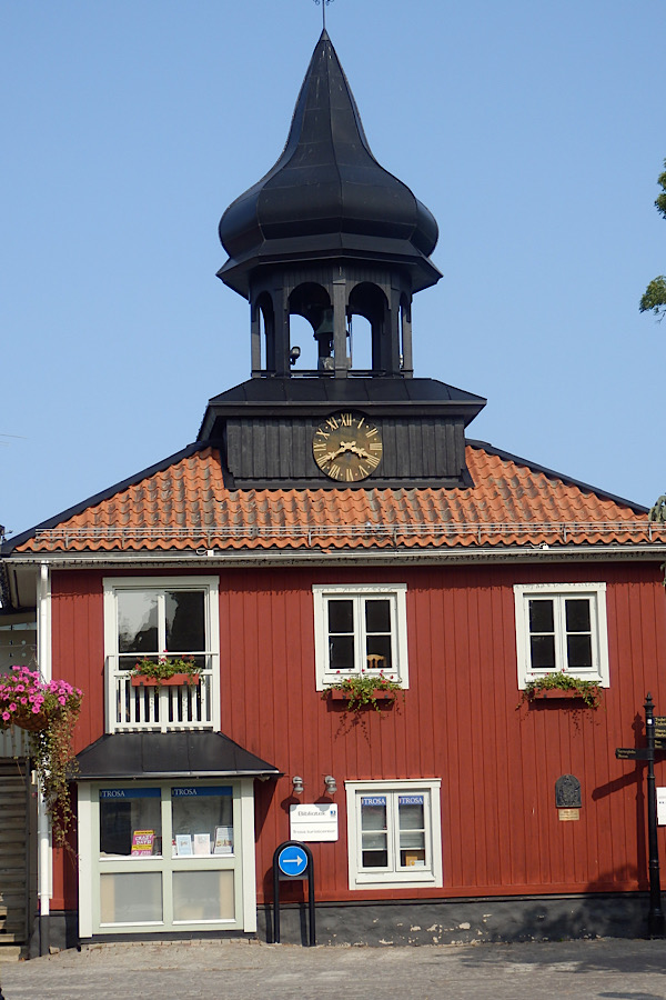 Beim Geocaching entdeckten wir am „Trosa Kommunhus eine Info-Tafel über die Geschichte der Stadt.