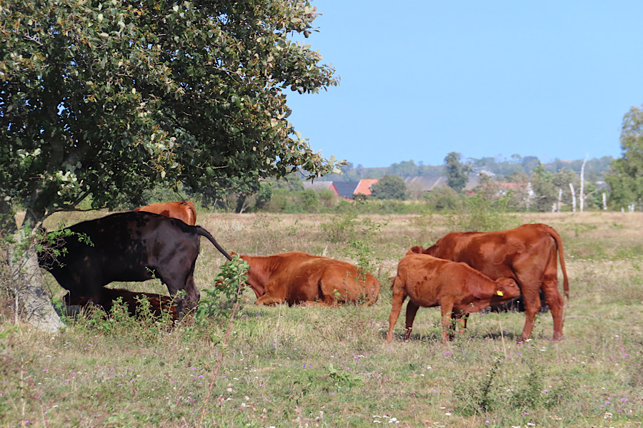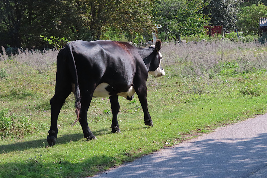 Auf unseren Radtouren haben wir täglich mit besonderen „Wegelagerern“ zu tun, die öfters am Radweg liegen und ihre Jause wiederkauen. Da Brigitte die Tiere besonders liebt, fahre ich vor und greife auf meine Erfahrungen in der Jugend zurück.