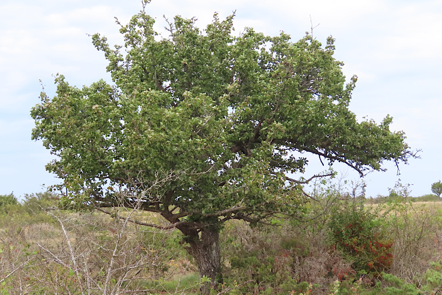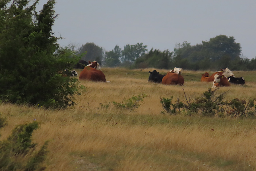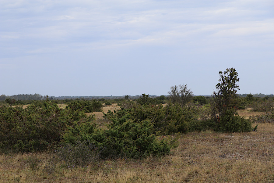 Inmitten des Stora Alvaret gelegen, ist Möckelmossen der größte Alvarsee Ölands. Die Fläche des Möckelmossen variiert jahreszeitlich. Während im Winter große Flächen überschwemmt sind, trocknen große Teile des Gebiets im Sommer völlig aus. Die Kalkerde der trockenen Flächen leuchtet dann weiß. Bei unserem Besuch hat nichts geleuchtet, aber wir haben noch spärliche Wasserlacken und die kalkhaltigen Felsenflächen gesehen. Um das Feuchtgebiet zu renaturieren wurden umfangreiche Rodungen der Büsche und Bäume durchgeführt.