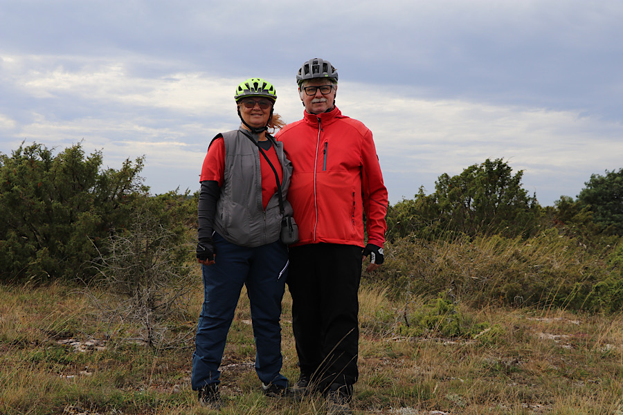 Bei einer Rad – Geocachingtour fahren wir nach Möckelmossen, einem Informationszentrum in der Alvaret. Dort entdeckt Brigitte, dass es eigene Touren für Radler:innen gibt. Trotz der dicken Wolkendecke und der heftigen Winde wagen wir das Abenteuer. Wir nutzen die zahlreichen Informationstafeln über das Naturschutzgebiet und fotografieren den schwedischen Text und mit der automatischen Übersetzung bekommen wir Infos für diesen Artikel.