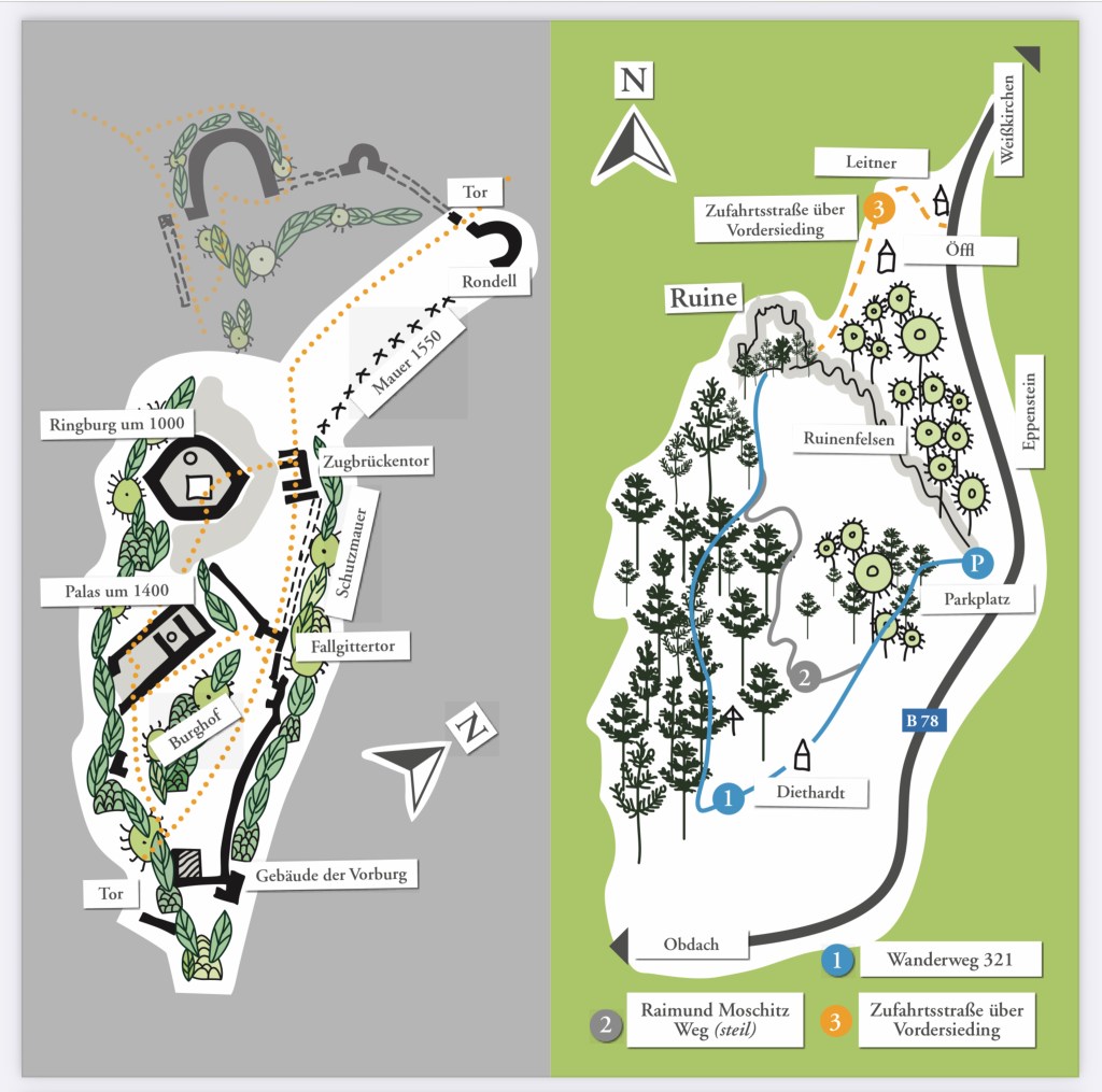 Von 2010 bis 2016 wurden die vom Burgverein durchgeführten Sanie- rungsmaßnahmen vom Verein FIALE wissenschaftlich begleitet. Zwar stammt die erste urkundliche Nennung der Burg von 1160, einer Zeit als die vermeintliche Gründerfamilie („Eppensteiner“) längst ausge- storben war, doch wurden auf den Burghängen systematische Fundaufsammlungen durchgeführt. Diese zeigen, dass der Standort bereits vom Neolithikum bis in die Spätantike als Siedlungsplatz gedient hat. In der Ringburg konnte eine aus dem Felsen gehauene Tankzisterne freigelegt werden, die aktuell den Beginn der mittelalterlichen Anlage darstellt. Eine Haselnussschale aus dem darin enthaltenen Speiseabfall – und somit auch das keramische Fundmaterial – konnte naturwissenschaftlich in das frühe 11. Jahrhundert datiert werden. Spätestens ab dem 12. Jahrhundert dürfte ein steinerner Vorgänger der Ringburg in ihren heutigen Ausmaßen bestanden haben.