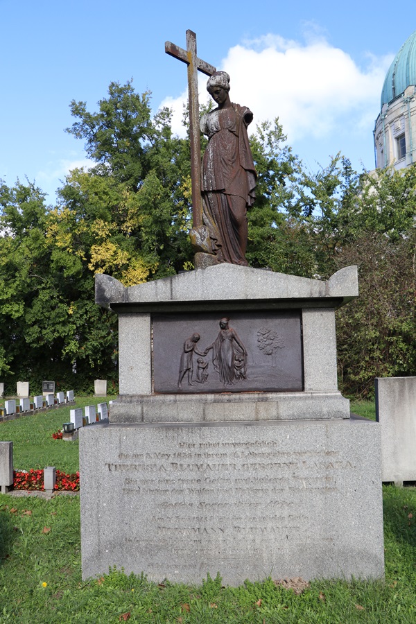 Wir machen uns auf den Weg zum Jubiläumspfad im Zentralfriedhof. In der Anlage 45b wird sehr anschaulich in sieben Stationen die Geschichte des Zentralfriedhofs dargestellt. Besonders angesprochen haben uns die kurzen zusätzlichen Informationen bei den Schautafeln.