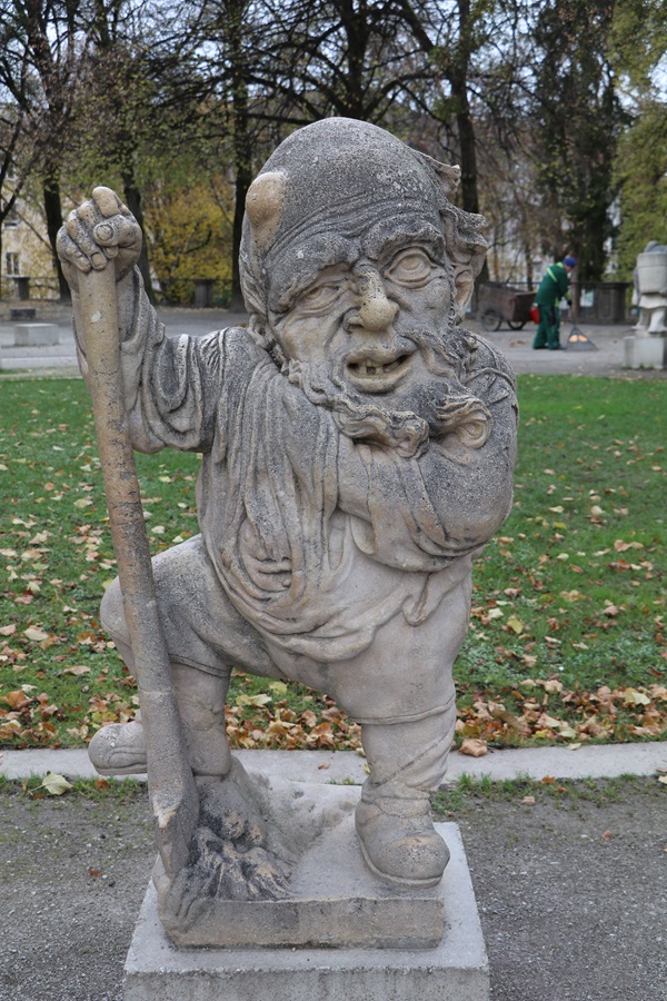 Während unserer Geocaching-Tour und beim Absolvieren des Adventure-Lab „Walk of Modern Art“ durchqueren wir den Mirabell-Park mit seinen Zwergern.