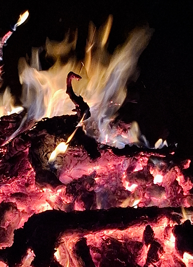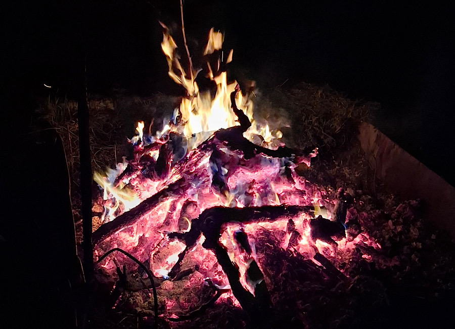Auf Einlandung zweier Freund:innen trafen wir uns zu einem abendlichen Lagerfeuer zur Winterverbrennung. Das Verbrennen von einem ein Jahr gelagertes Holz alter Rebstöcke soll endgültig den Winter vertreiben und zu einem schönen, langen Sommer führen, auf den eine gute und erfolgreiche Erntezeit folgt.