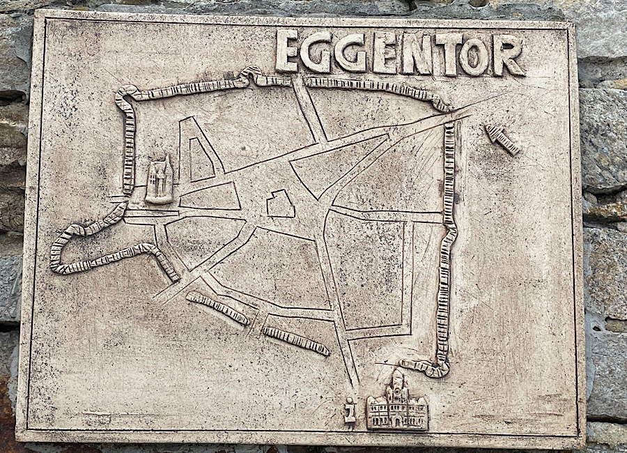 Das „Egentor“ erschloss die Stadt von der Ostseite her. Der Torturm wurde 1845 demoliert. Der Torbogen wurde in ein Haus integriert, das anstelle des Turmes stand. Torbogen und Haus wurden bei der Straßenerweiterung abgerissen.
