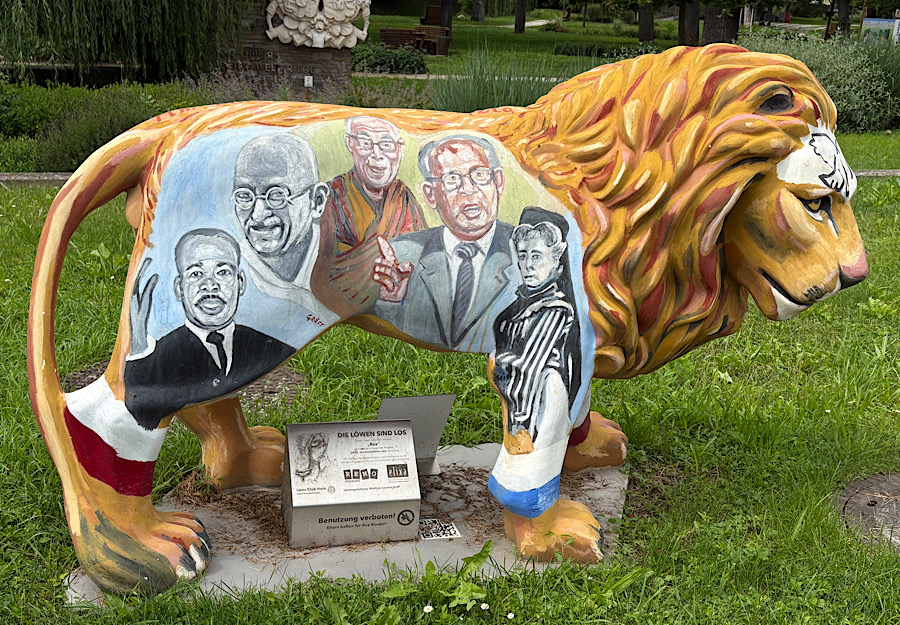 Im Stadtpark werden wir auch fündig. Die Löwen sind los. Seit 2020 bevölkern 20 Löwen, stellvertretend für die 20 Gemeinden, den Bezirk Horn.