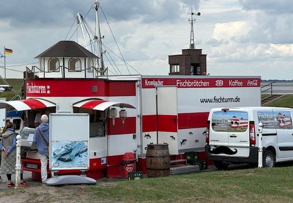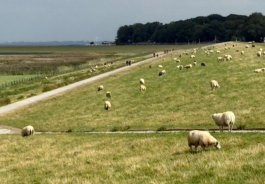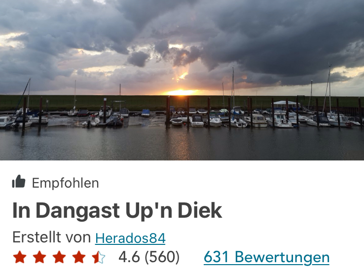 Unsere Geocachingrunden in Dangast führten uns immer wieder auf den Deich (Plattdeusch: Up‘n Diek“. Hier spüren wir bereits den Herbst und wir „Landratten“ müssen uns erst an das Nordseeklima gewöhnen. Ist die Sonne da, ist es angenehm warm – wird es schattig und eine Brise zieht auf, dann beginnt es schnell zu frösteln. Die frische Seeluft putzt unsere Großstadtlungen durch, einfach herrlich und der Blick auf das Meer, das hat uns heuer bisher gefehlt. Da können schon einige Schauerwolken umherziehen, das hält uns vom Geocaching und den damit verbundenen Wanderungen nicht ab.