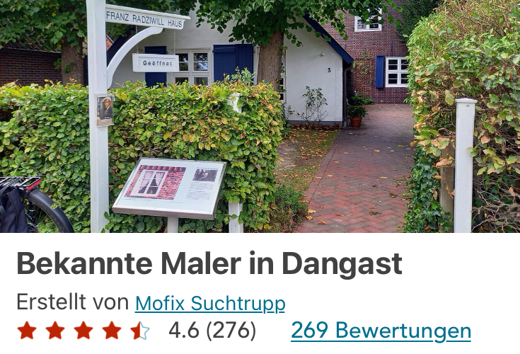 Dieser Labcache führt euch zu einigen schönen Punkten in Dangast „Up’n Diek“ (Plattdeutsch für „auf dem Deich“). Vom Dangaster Siel über Mahnmale, viel Kunst, bis hin zum Punkt der mitteleuropäischen Gradmessung ist alles dabei.