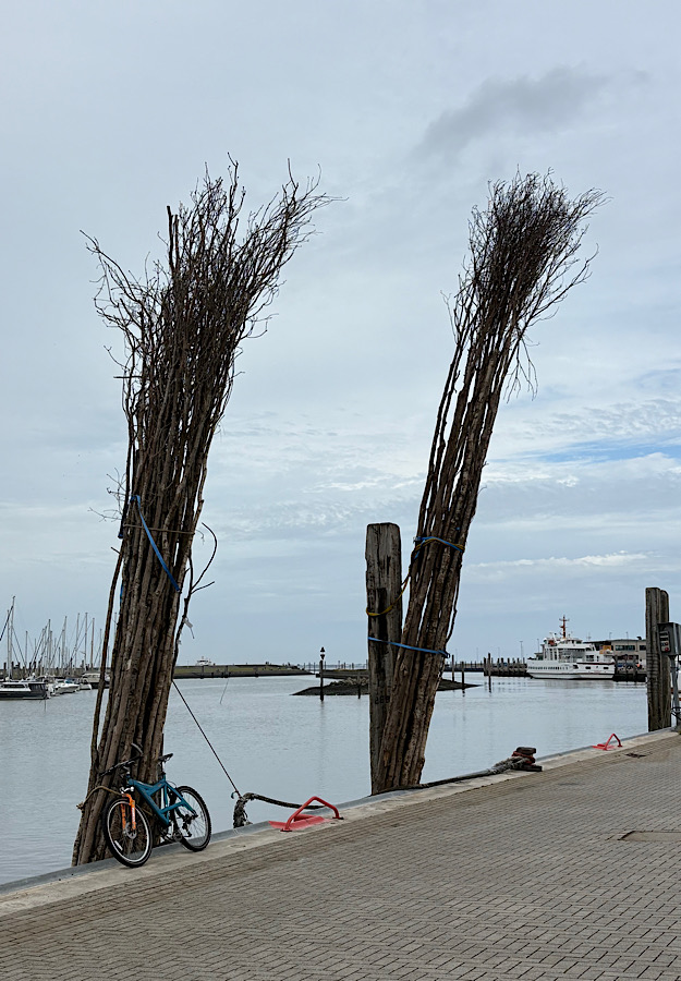 In der Nähe der Seenotrettungsstation ragen diese „Riesenbesen“ in die Luft.