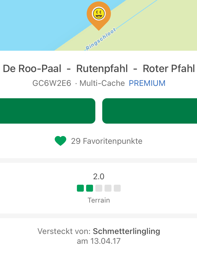 Startpunkt ist „De Roo-Paal“, nach dem auch die angrenzende Straße „Roter Pfahl“ benannt ist. Die korrekte Übersetzung ist allerdings „Rutenpfahl“ von Rood / Roed = Rute.