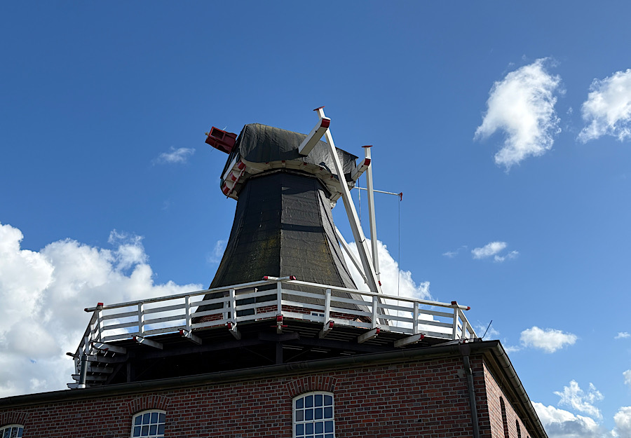 Vor vielen Jahren waren Brigitte und ich im Urlaub hier in Neßmersiel in Ostfriesland. Wir nächtigten damals im Hotel Wikinger.Während unserer Ortstour kamen wir auch zur Mühle, wo uns ein Mann bei der Besichtigung ansprach und uns darauf hinwies, dass sie guter Dinge seien, dass die Mühle im nächsten Jahr wieder ihre Flügel hat.