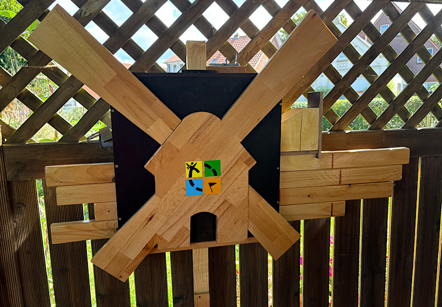 Natürlich darf hier ein Geocache nicht fehlen. Ein paar Tage vor dem Mühlenfest, bei unserem ersten Besuch in Norden, lösten wir das Rätsel der Vorrichtung. FivePipes schreibt dazu im Listing: