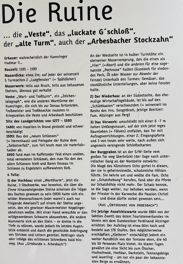 Bei unserem zweiten großem Hobby – Geschichte von unten – gibt es denn Blogeintreg. Geschwister Mandl – Ihr Leben der Gemeinde Arbesbach „geopfert“. Am Weg zum Stockzahn haben wir den Gedenkstein und die Informationstafel zu den antisemitischen Attacken 1938 in Arbesbach gesehen. Super, dass sich die Gemeinde ihrer Vergangenheit stellt.