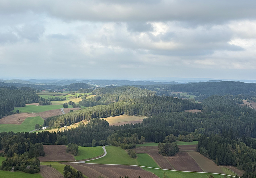 Von der Aussichtsplattform hatten wir eine grandiose Rundum-Sicht. Ich war froh, dass es nach dem Eintrittsdrehkreuz (€2.50) Indoor auf Holzstiegen weiterging und ich nicht durch gelochte Stahlstufen nach unten durchsehen konnte.