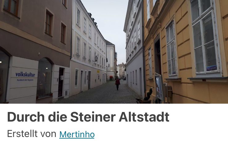 Nach der langen „Hochzeitsnacht“ meiner Schwester Sabine mit Erich gönnen wir uns zwei erholsame Tage in Krems. Als Standort wählen wir mit unserem Womo einen Platz am Donaucamoing Krems. Der Campingplatz ist bis Ende Oktober geöffnet und bietet im Herbst die ideale Ausgangsbasis für kleinere Spaziergänge in Stein und Krems. Wir erkunden heute die Altstadt von Stein.