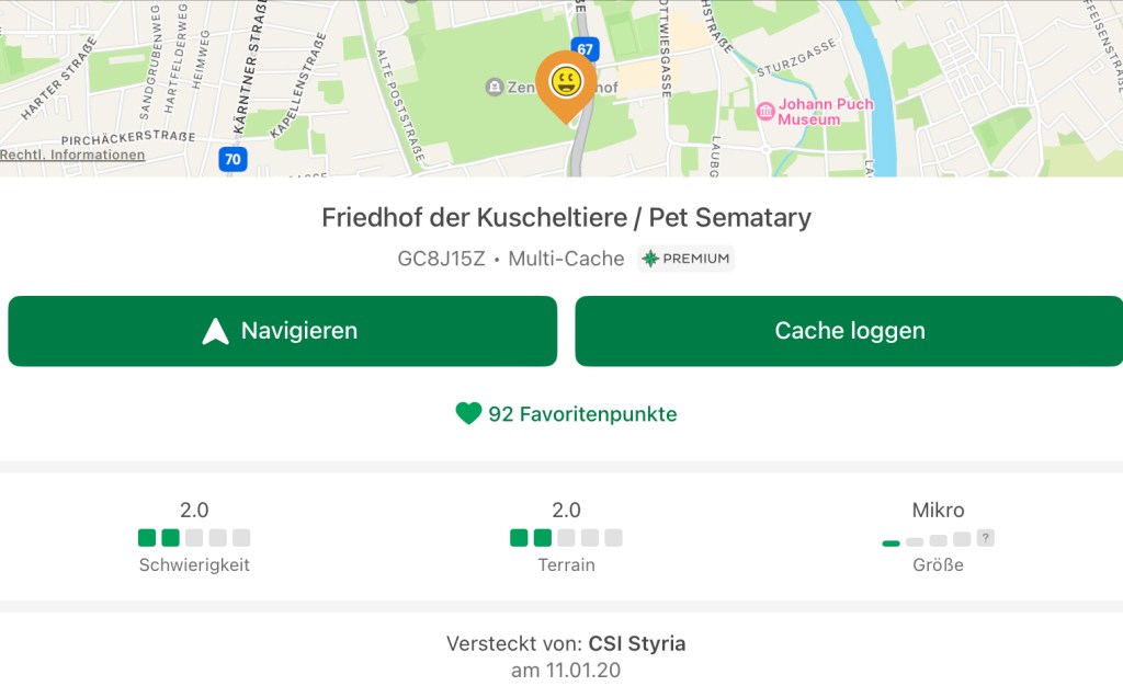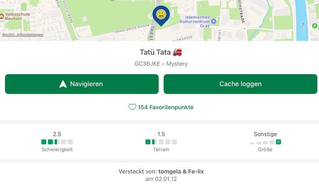 Wir mussten 7 Stationen absolvieren. An jeder Station war der Code eines verschollenen Trackables zu ermitteln. Dieser Code begann mit „TB“, danach mussten die Platzhalter durch die ermittelten Zahlen/Buchstaben erstetzt werden. In den Logs dieser Trackables befanden sich die Koordinaten für die nächste Station und eine Variable für das Final.