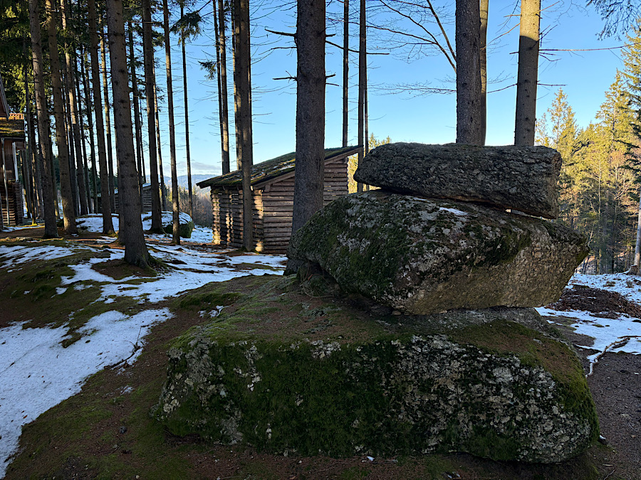 Diese Steinformation kommt fast jedes Jahr in einem Artikel vor. Ich nenne die „Drei“ die „Wächter“ des Holzhauses. In mystischen Interpretationen wird diesen uralten Granitblöcken alles mögliche nachgesagt. Obwohl ich nicht daran glaube, ziehen sie mich beim Fotografieren doch in ihren Bann.