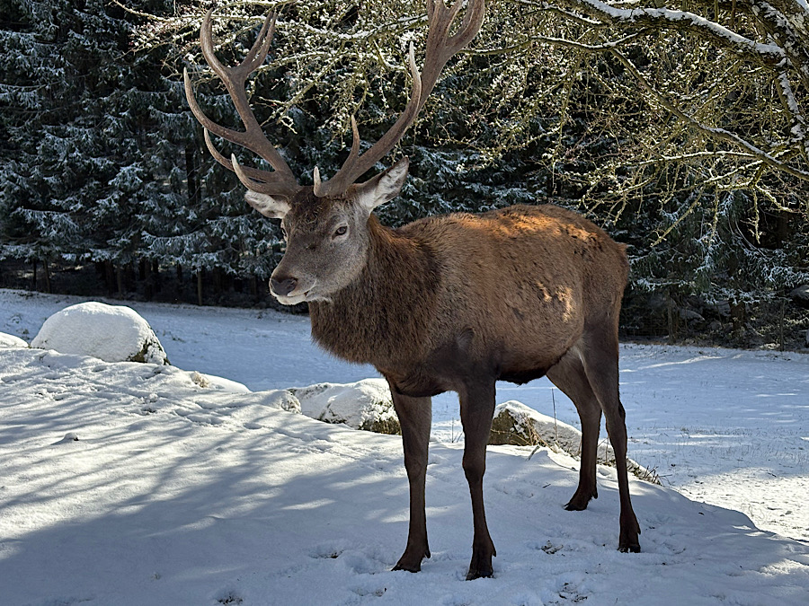 Am Nachmittag zu Silvester machten wir noch einen kurzen Ausflug zum nahegelegenen Hirschgehege. Sonnenschein, frische, kalte Luft und Schnee, der im Schatten beim Auftritt knisterte.