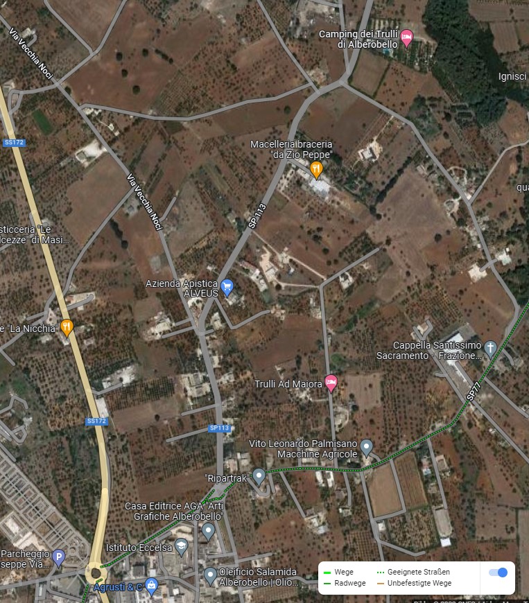 Bei der Anreise nicht dem GPS folgen, denn da landet man bei einer Unterführung mit 1,8 m Durchfahrtshöhe. Wenn man von der Hauptstrasse abfährt nach rechts auf der SP4 dann rechts in die Via Alessandro Scarfetti und ab hier ist ausgeschildert.
