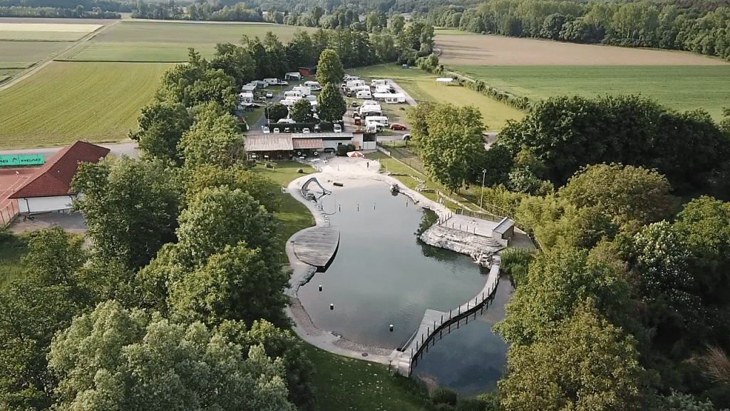 Unser 2008 errichteter Naturbadesee bietet mit ca. 1 500m2 den idealen Ort zum Abkühlen, schwimmen und sonnen.