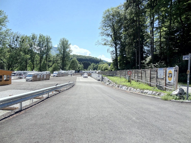 Geschotterte Plätze hinter der Jausenstation. Genügend Ansteckplätze an den Stromsäulen für die man 1 € – Münzen benötigt. Frischwasser und Toilettenentsorgung vorhanden. Die Sanitäreinrichtung (je eine Herren- und Damentoilette, und je eine Brausekabine) sind sehr sauber. Keine Geschirrspülvorrichtung.