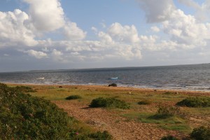 Im Volksmund werden sie die weißen Männer genannt. 9 m hohe Skulpturen aus weißem Beton, die von Sven Wilg Hansen anläßlich des 100jährigen Bestehen der Gemeinde Esbjerg ausgeführt wurden. Die Skulpturen inspiriert von den Monolithen der Osterinseln, zeigen die Begegnung der reinen und unverrdienten Menschen mit der Natur. Der Mensch wie er war, als aus dem Leben der Mutter kam. So steht es in der Beschreibung, die uns zur Verfügung stand. Da fängt mein Problem an.
