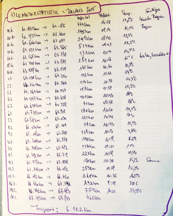 - 10:35 Abfahrt bei Kilometerstand 66.092 – 16,5°C