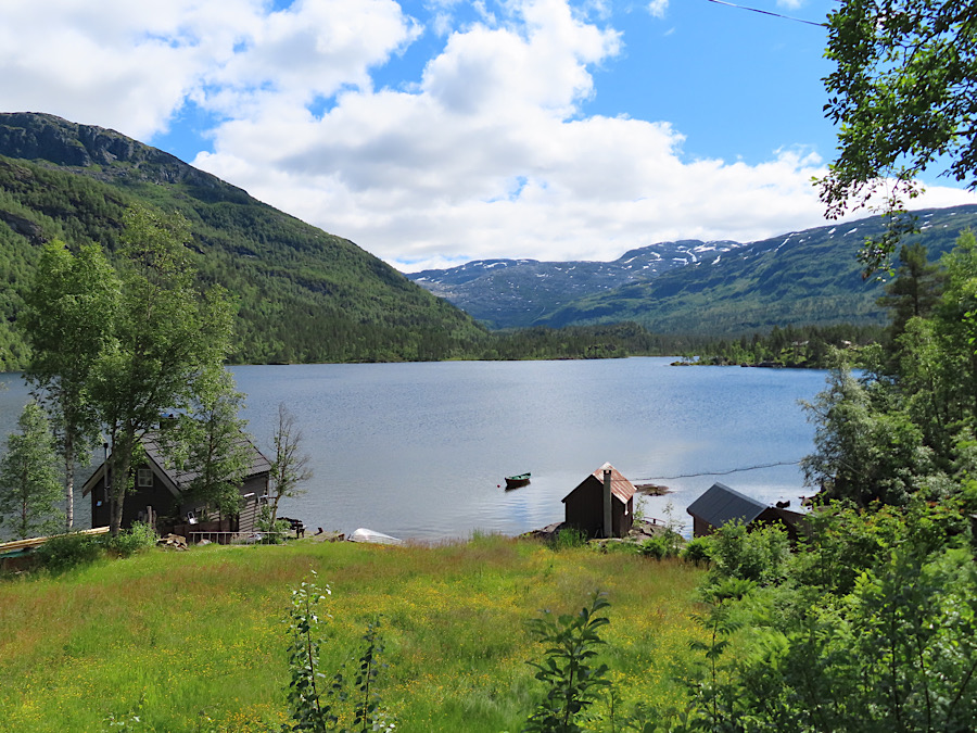 Wir übernachten am Womo-Stellplatz in Røldal. Die Stabkirche haben wir vor Jahren schon besichtigt. Im nahgelegenen Coop versorgen wir uns mit Lebensmittel und einem Abendessen (geräucherten Fisch).