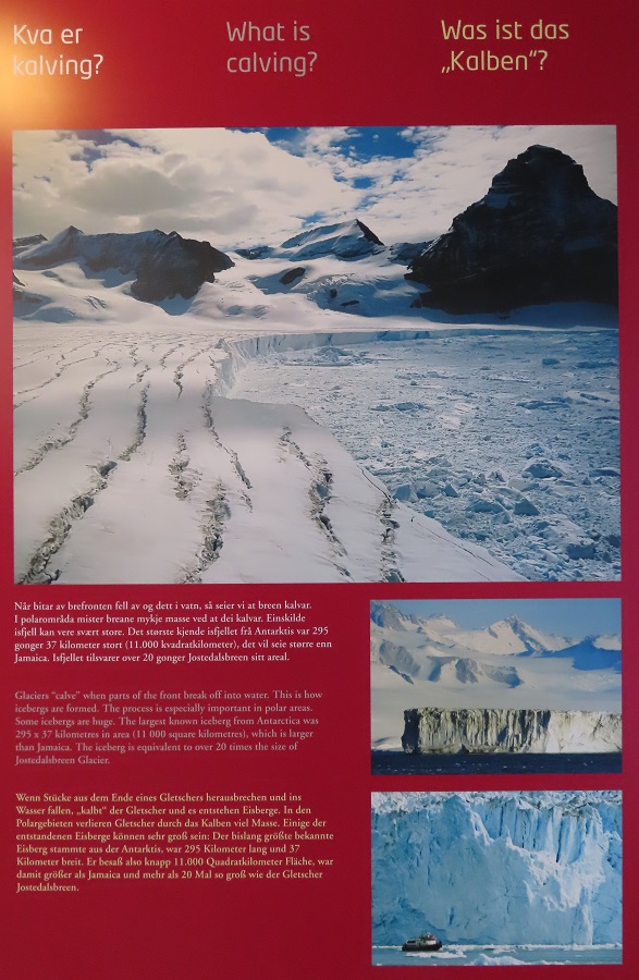 Unsere erste Station ist das Norwegische Gletschermuseum & Ullveit-Moe-Klimazentrum – Fjærlandsfjorden 13, NO-6848 Fjærland. Hier es einen tollen animierten Film und einen Zeittunnel zum Klimawandel.